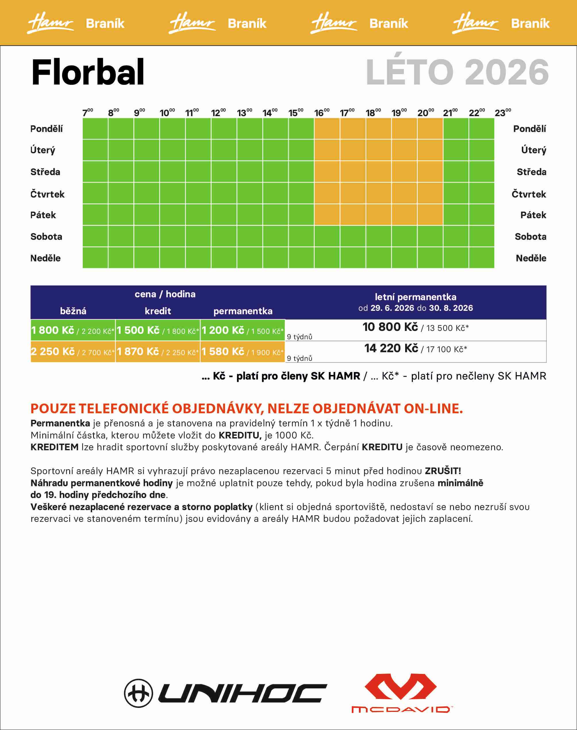 CENÍK - FLORBAL - BRANÍK - LÉTO 2026, platný od 29.6.2026