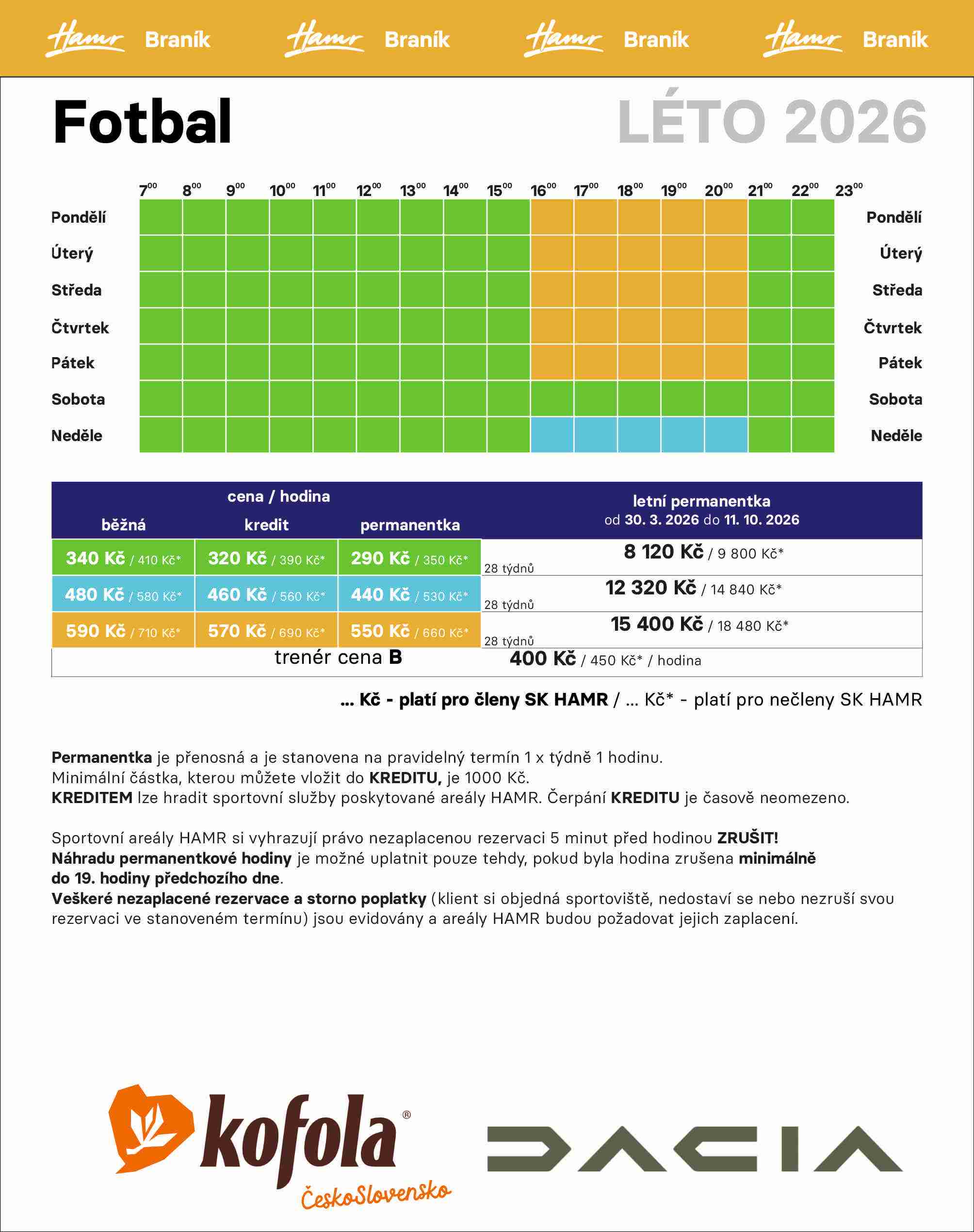 ceník - Fotbal - Braník - LÉTO 2026, platný od 30.3.2026