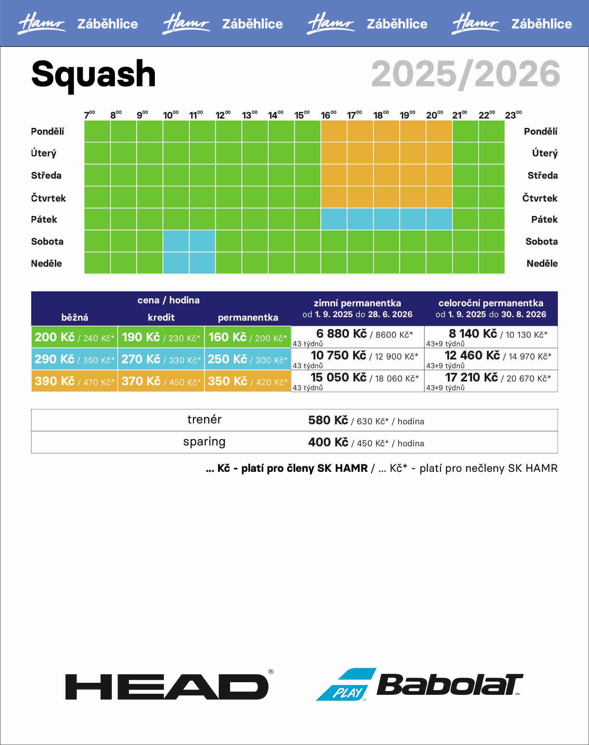 Ceník - Squash - Záběhlice - ZIMA 2025/2026, platný od 1.9.2025
